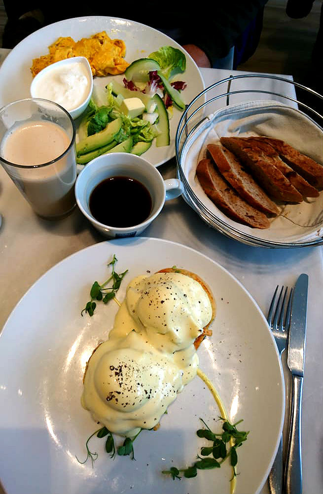 מבחוץ המקום נראה קצת פנסי אך המחירים נוחים והאווירה טובה. הזכיר לי קצת את "הקפיטריה" בניו יורק. כזאת אני, אשת העולם הגדול! (אבל גם הזכיר לי את הבנדיקט בתל אביב, אז אני די עממית סה"כ). אני הזמנתי מנת קליפורניה בנדיקט, עם בריוש טרי שעליו ביצים עלומות, רוטב הולנדז, אבוקדו, עגבנייה וגבינת אדם. היה מעולה ושילמנו על שתי מנות ושני משקאות כ-7000 פורינט (כ-80 ש"ח).