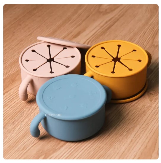 - כוס חטיפים ונשנושים – כוס חטיפים שהתינוק יכול להכניס את היד הקטנה והמתוקה שלו ולהוציא חטיף מבלי שהכל יישפך עליו (מתאים במיוחד לבמבה, קורנפלקס וכד')